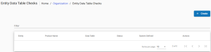 Step 1: From the main screen, click on Admin then Organization from the drop down list. This will launch the Organization menu. Select Entity Data Table Checks.