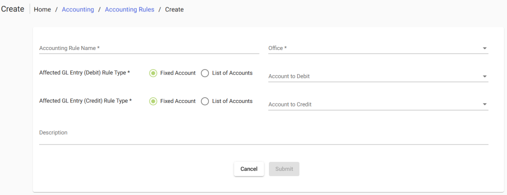 In the Accounting rule name box, enter a name for your new accounting rule.