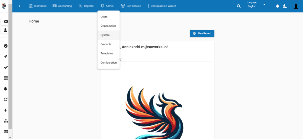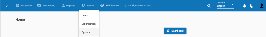 - On the Phenix menu, click Admin, and then click System on the drop down menuto open the System menu.