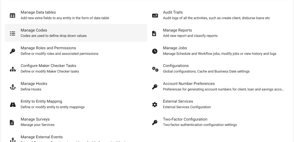 - b.On the System menu, click Manage Codes to open the Manage Codes dialog.