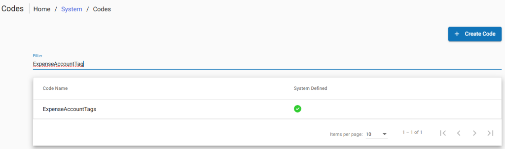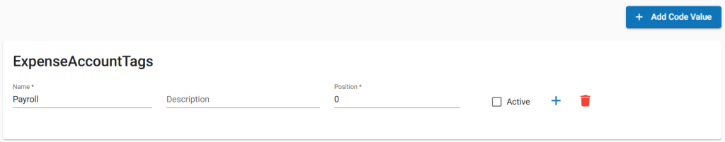 - d. In the Expense Account Tag dialog, click +Add Code Value.