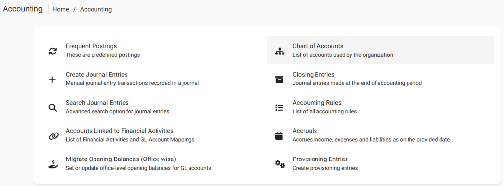 - On the Phenix menu, click Accounting to open the Accounting menu.