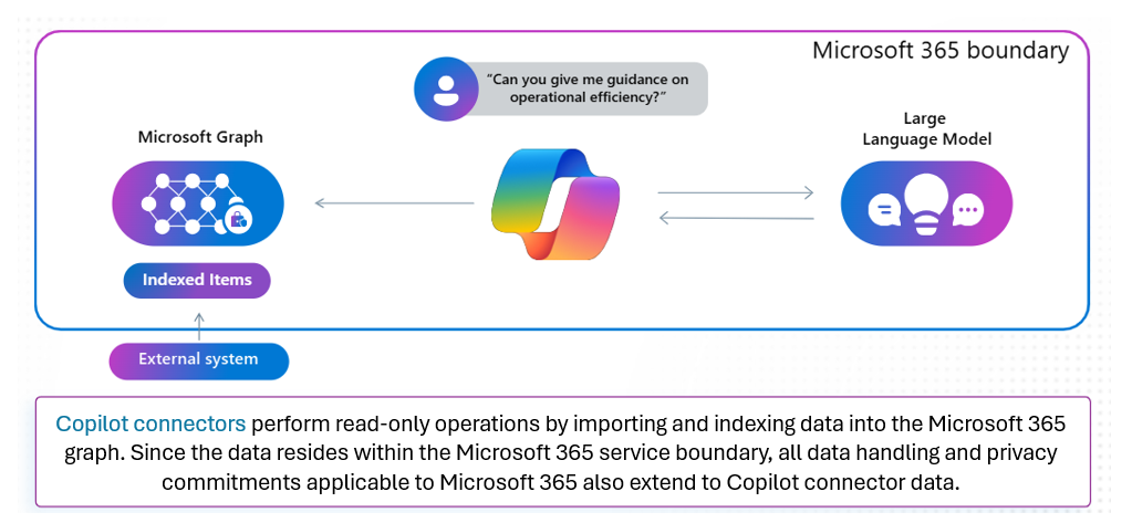 Graph bénéficie également d’un indexation avancée qui lui permet de comprendre le sens des mots et des expressions, et pas seulement les mots-clés, garantissant ainsi des résultats plus pertinents. Au lieu de rechercher uniquement des correspondances exactes, Copilot reconnaît les concepts associés. Par exemple, il peut relier une demande de « progrès financiers du T2 » à un document intitulé « Analyse des revenus trimestriels ». Cette capacité à faire correspondre l’intention plutôt que la formulation exacte rend les recherches et les réponses plus naturelles et utiles. Cette conscience contextuelle transforme Copilot en bien plus qu’un outil de recherche : elle permet des réponses significatives et adaptées à la situation, fondées sur des données réelles de l’organisation.