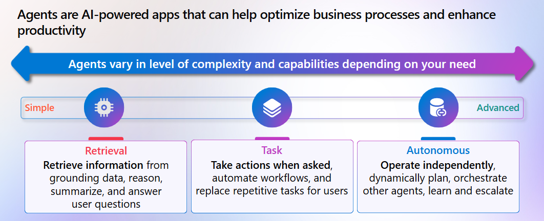Contrairement aux agents conçus pour les utilisateurs métier du quotidien, les agents avancés nécessitent des compétences en programmation pour être créés. Ils sont destinés aux développeurs qui doivent construire des solutions hautement personnalisées, exploitant des fonctionnalités puissantes comme les connecteurs personnalisés et l’IA générative. Par exemple, les développeurs peuvent intégrer des modèles d’IA avancés et des connecteurs de données personnalisés pour créer des agents très sophistiqués. Alors que les agents pour les utilisateurs métier ne nécessitent aucune compétence en programmation, les agents avancés doivent être créés à l’aide d’outils comme Copilot Studio ou Visual Studio Code.
