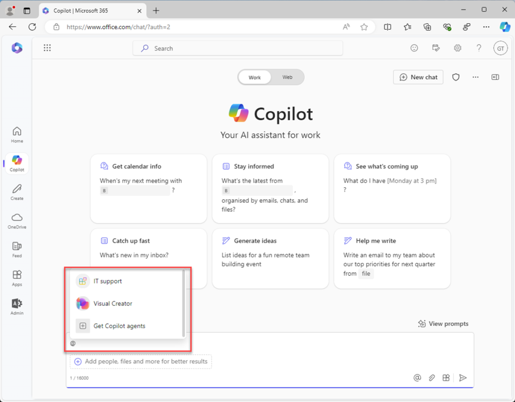 - In context: mentioning the agent with @ from the Microsoft 365 Copilot business chat (BizChat).