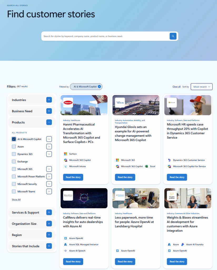 Go to Search for Customer Success Stories from the Learn More section in the Summary.
