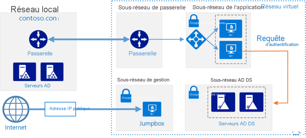You can use Microsoft Entra Domain Services to project a Microsoft Entra domain onto an Azure virtual subnet. When you use this configuration, services such as domain join, Group Policy, Lightweight Directory Access Protocol (LDAP), and Kerberos and NTLM authentication are available to any VM deployed on the subnet.