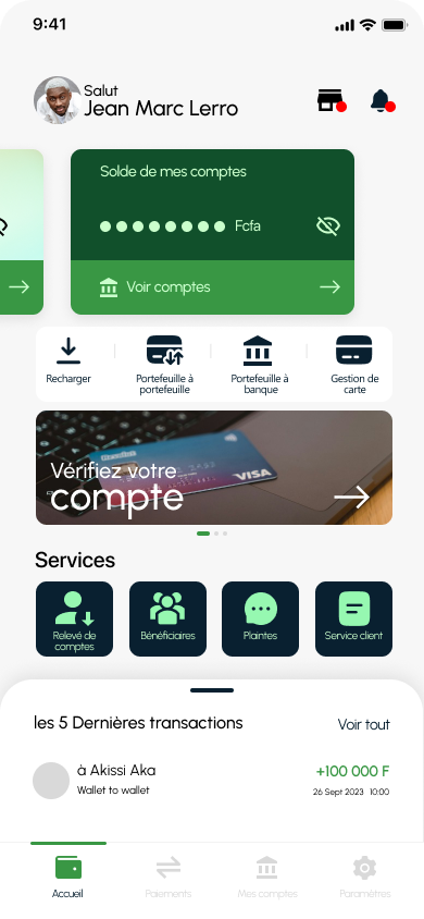 After that, they will receive a message informing them that their request has been considered, and they will be redirected to the welcome page to access their home page where they can perform their transactions.