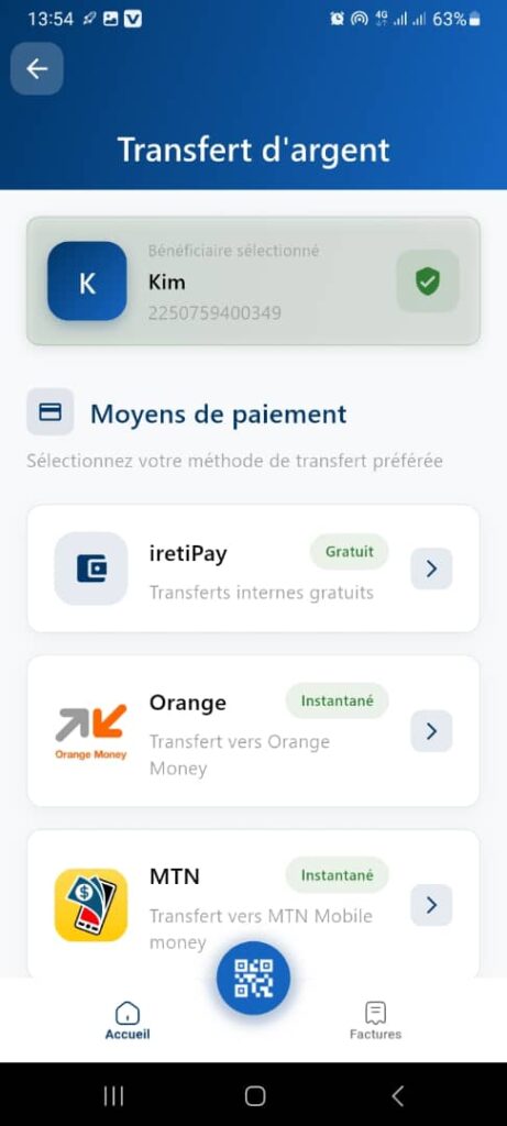 Then enter the number (contact) to whom you want to transfer money, which is not an IretiPay number.