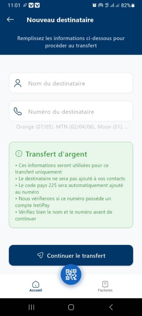 Home Page: Transfer with Mobile if the Number Does Not Exist & Is Not IretiPay