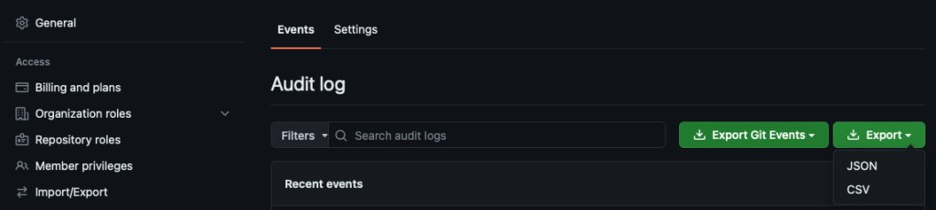 Viewing and exporting Audit Logs via the GitHub UI