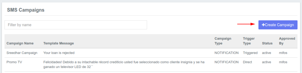 On the SMS campaigns page, click the ‘Create SMS Campaign’ button to create a new SMS campaign.