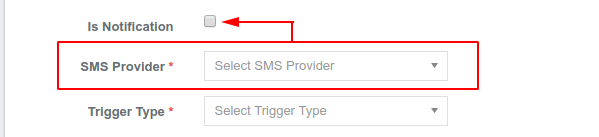 - Notification: By default, the campaign is not a notification, so you must provide the SMS provider. If the campaign is a notification type, please check the box. This will disable the SMS provider section, and you can then proceed to the trigger type.