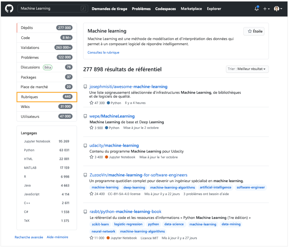 From there, you can find relevant repositories based on your search keyword, as well as repositories curated by community members.