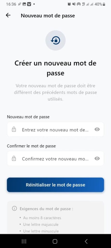 This page is used when the user needs to reset their password for security or recovery purposes.