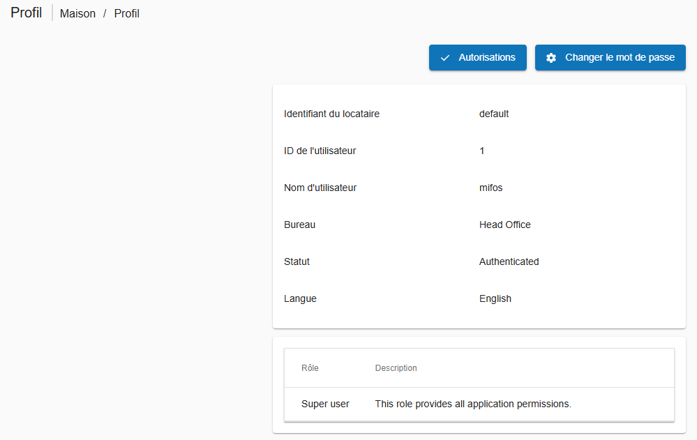 La page Profil fournit des détails sur le profil de l’utilisateur, tels que :