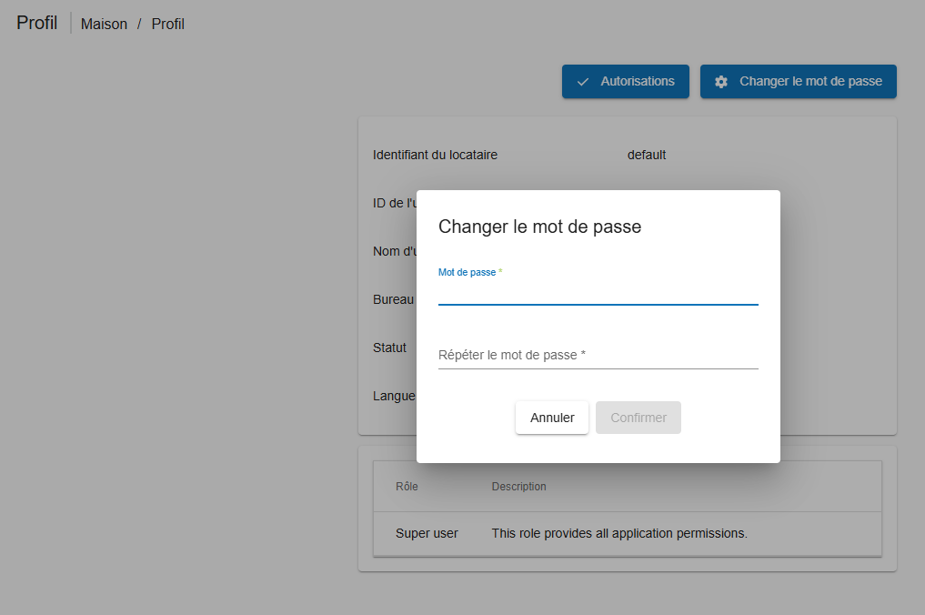 Cliquez sur Changer le mot de passe pour modifier votre mot de passe actuel.