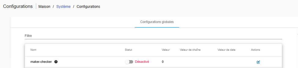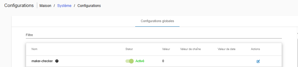 - Activer la configuration globale Maker-Checker