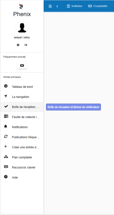 La boîte de réception Maker-Checker se trouve parmi les raccourcis sur le côté gauche de la page d’accueil de Phenix et est intitulée « Boîte de réception du vérificateur & Tâches ».