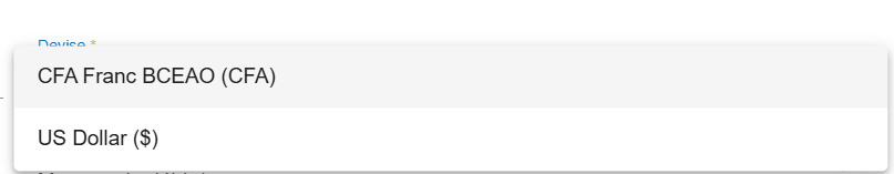 b. Dans la liste Devise, sélectionnez la devise de la transaction.