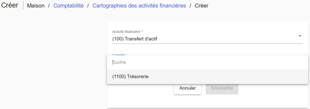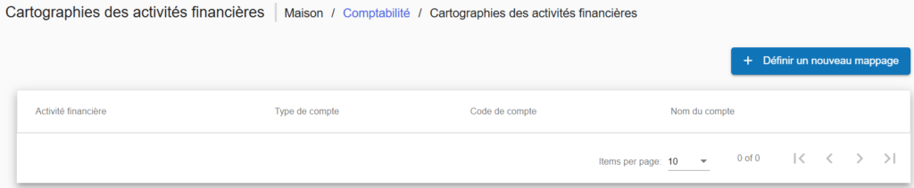 Les comptes liés aux activités financières sont des comptes mappés nécessaires pour permettre au système de générer automatiquement des écritures comptables. Voici les comptes à mapper selon l’activité :