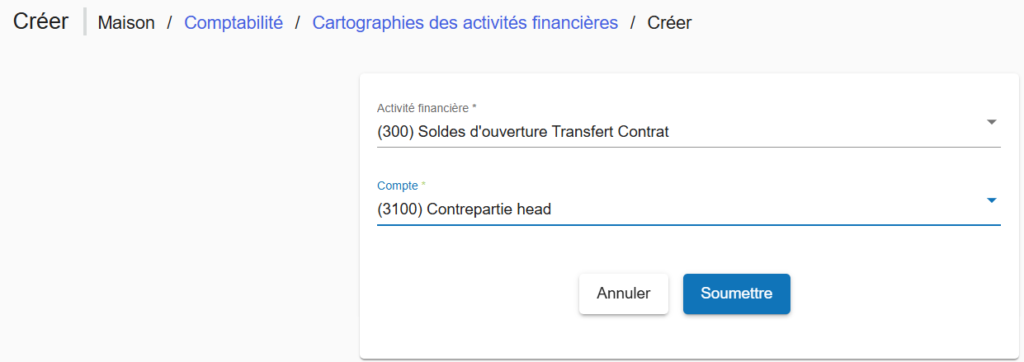 - Compte : Compte de contrepartie des soldes d’ouverture (type de compte : Capitaux propres)