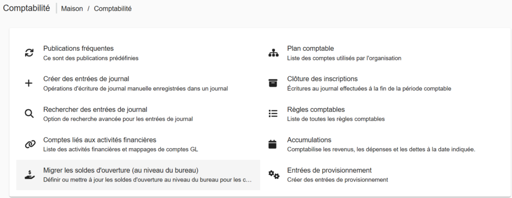 (Comptabilité >> Migrer les soldes d’ouverture)