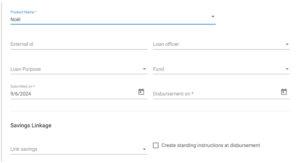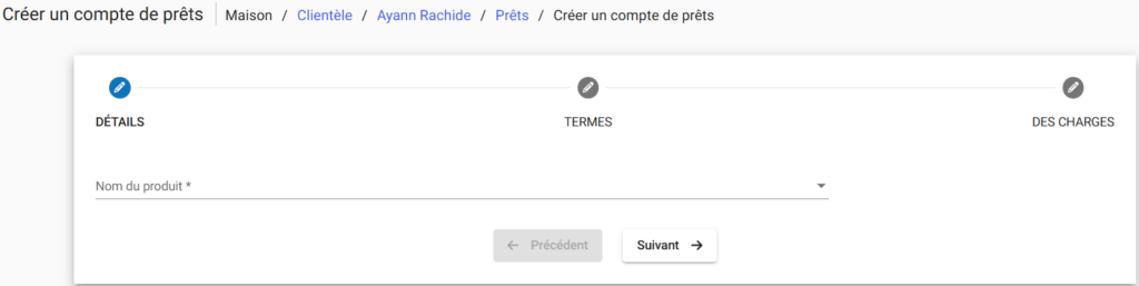 - Sélectionnez le produit de prêt sur lequel sera basé le compte de prêt, à partir de la liste des produits disponibles.
