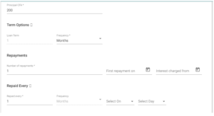- Complétez les champs du compte de prêt, en modifiant les valeurs par défaut si cela est autorisé et pertinent pour la demande.
