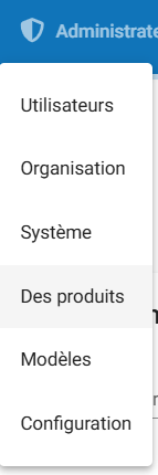 1. Sélectionnez Admin, puis Produits dans le menu déroulant.