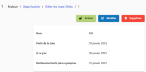 Cliquez sur un congé dans la liste pour afficher plus de détails :