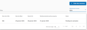 Une fois que vous avez sélectionné Gérer les congés, un tableau de tous les congés s’affichera. Les champs suivants seront visibles :