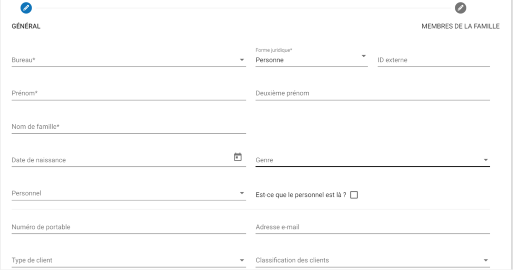 Cliquez sur le bouton Créer un client et le formulaire ci-dessous apparaîtra.