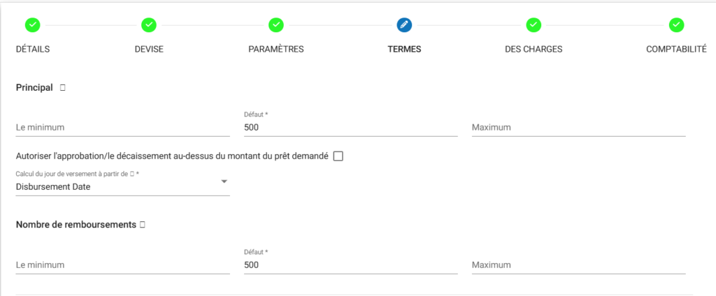 Dans la capture d’écran ci-dessous, un exemple de montant proposé dans la page de nouvelle demande de prêt est affiché :