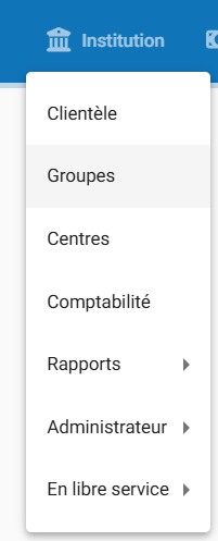 Depuis l’écran principal, sélectionnez Institution, puis sélectionnez Groupes dans le menu déroulant.