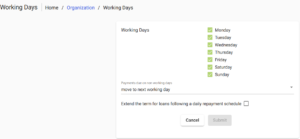 3. Décidez si vous souhaitez prolonger la durée des prêts avec un calendrier de remboursement quotidien en laissant la case cochée (pour prolonger) ou en la décochant (pour ne pas prolonger).