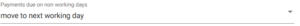 • Sélectionnez le jour auquel les paiements dus les jours non ouvrables seront reportés, en cliquant sur le menu déroulant.