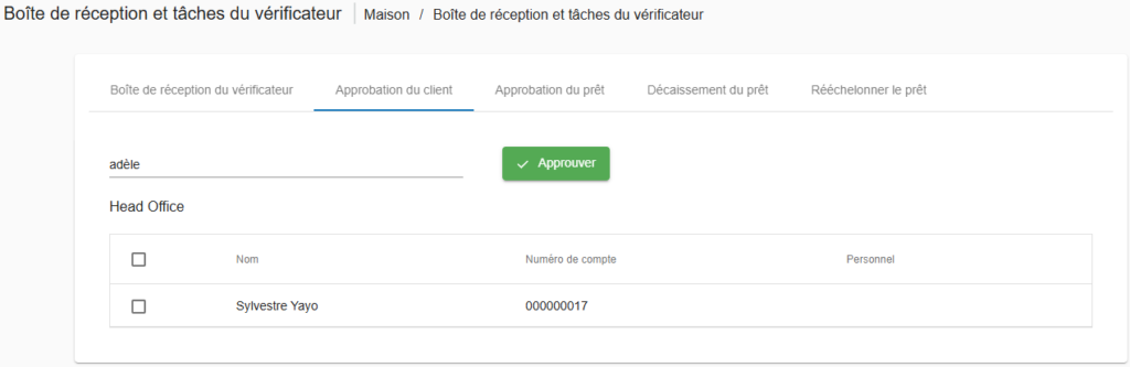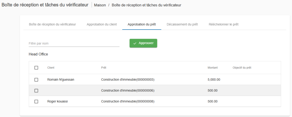 Ensuite, cliquez sur « Approbation des prêts » pour afficher la liste des prêts non encore approuvés.