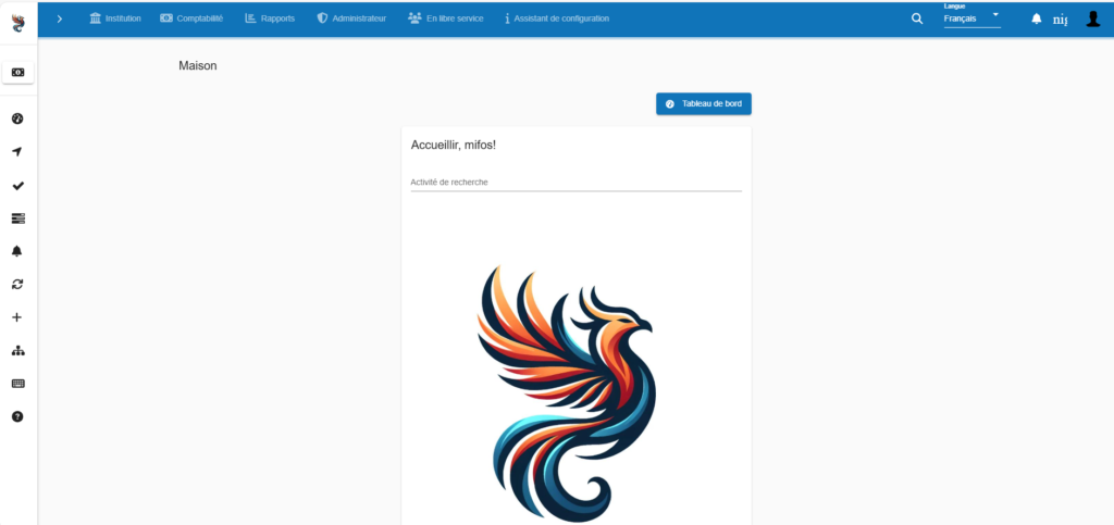 Situé en haut à droite, il permet de basculer entre la page d’accueil et la page du tableau de bord. - Nom d’utilisateur