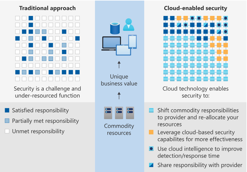 Dans l’approche activée par le cloud, vous pouvez transférer les responsabilités de sécurité quotidiennes à votre fournisseur cloud et réallouer vos ressources.