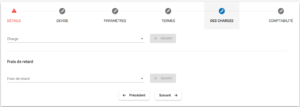 Pour ajouter une pénalité de retard, vous devez l’avoir préalablement configurée dans la section Frais.