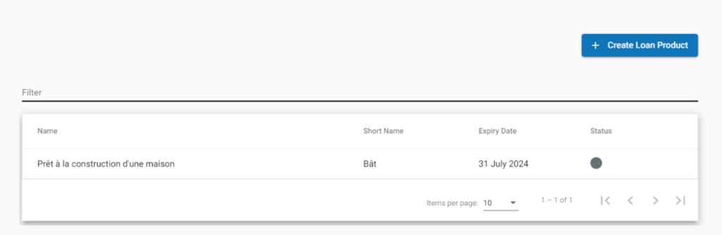 La page Produits de prêt s’affichera comme illustré ci-dessous :