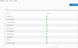 Une fois que vous avez cliqué sur Gérer les codes, l’application Phenix générera une liste de tous les codes présents dans le système Phenix pour votre organisation.