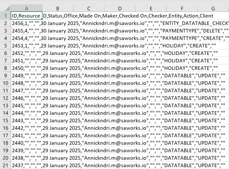 Cela téléchargera un fichier CSV :