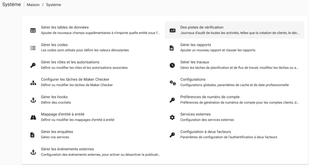Cela ouvrira le menu System. Sélectionnez ensuite Pistes d’audit.