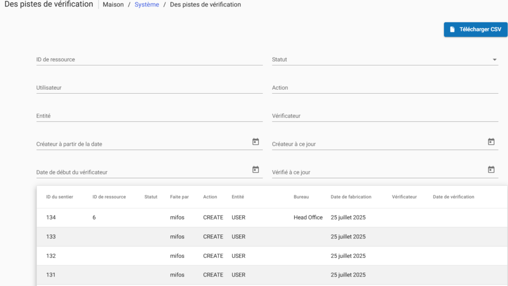 Les pistes d’audit vous permettent de suivre les activités de votre organisation dans le système Phenix.
