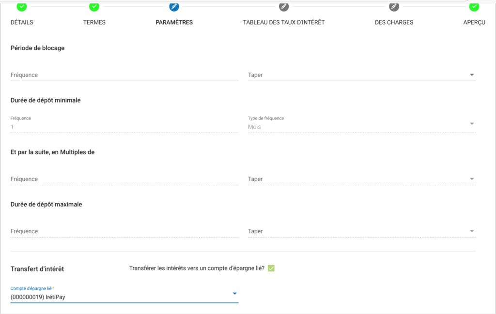 Le dépôt à terme doit être lié au compte d’épargne au moment de la soumission de la nouvelle demande de dépôt à terme, afin de permettre le transfert de fonds depuis le compte d’épargne.