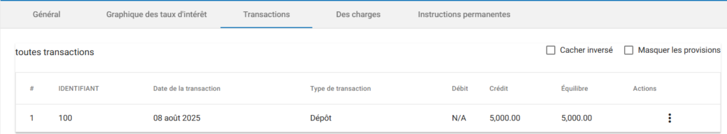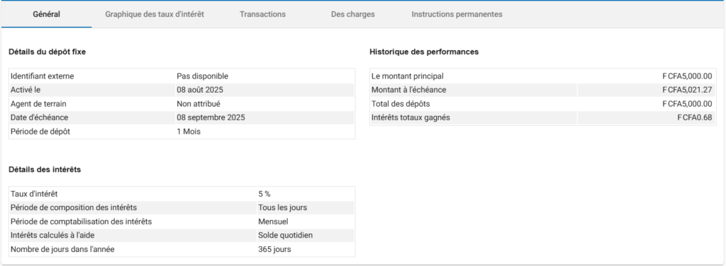 Vous pouvez le vérifier en accédant à la page du compte de dépôt à terme >> Transactions >> sélectionnez l’une des transactions effectuées.