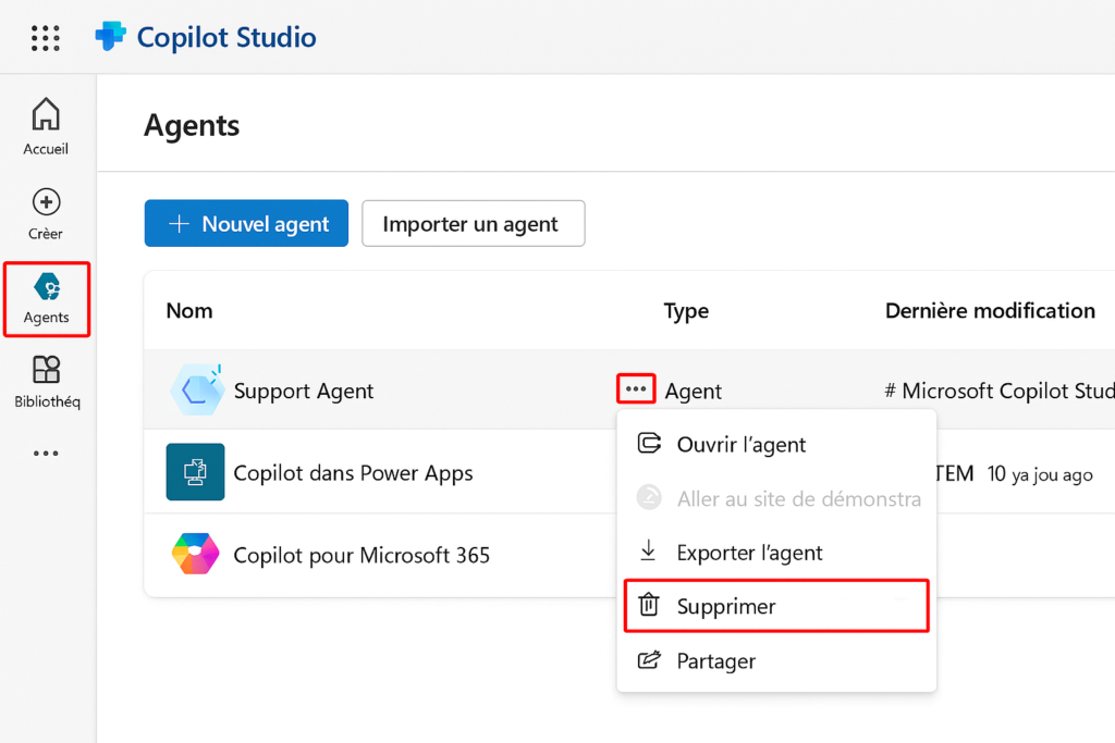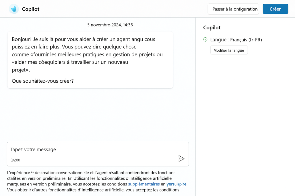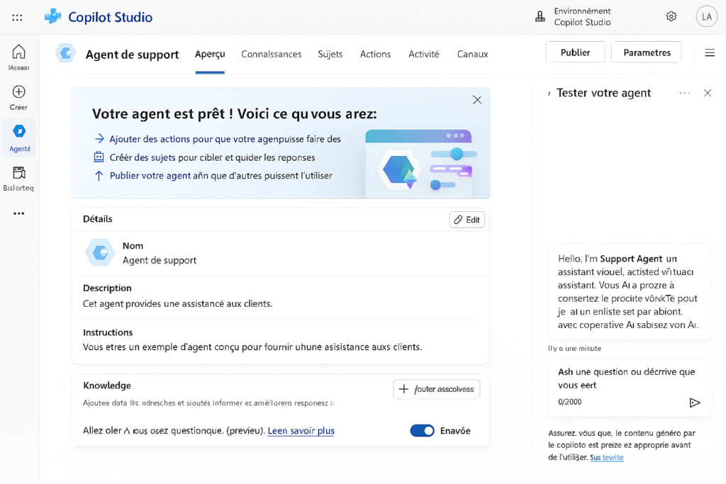 Créer des agents et travailler avec l’interface Microsoft Copilot Studio